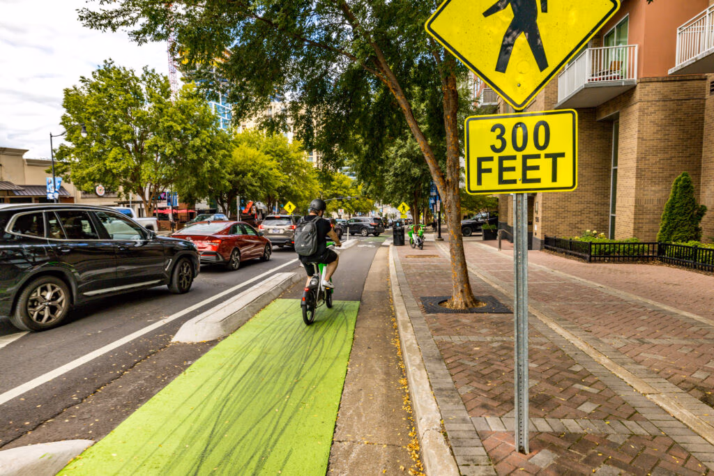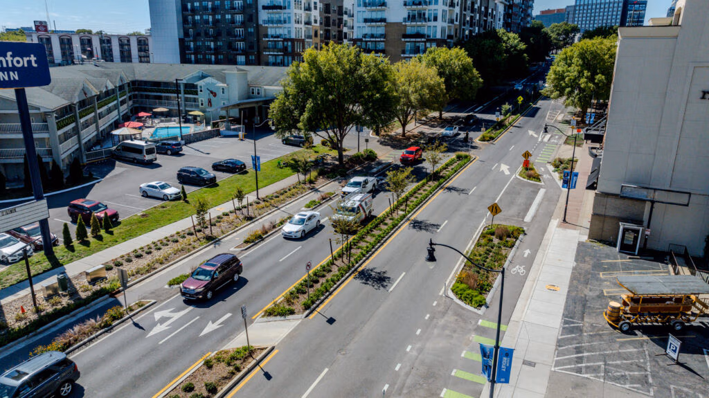 KCI’s long-standing partnerships in Tennessee, which include Metro Nashville and the Nashville Department of Transportation and Multimodal Infrastructure (NDOT), have given the team a deep understanding of local transportation needs. One of the most visible examples of this is the Demonbreun Street bikeway project. As one of the most heavily used bikeways in Davidson County, unauthorized parking and loading often blocked the bikeway and forced cyclists into bustling vehicular traffic, fostering safety concerns for multi modal mobility.